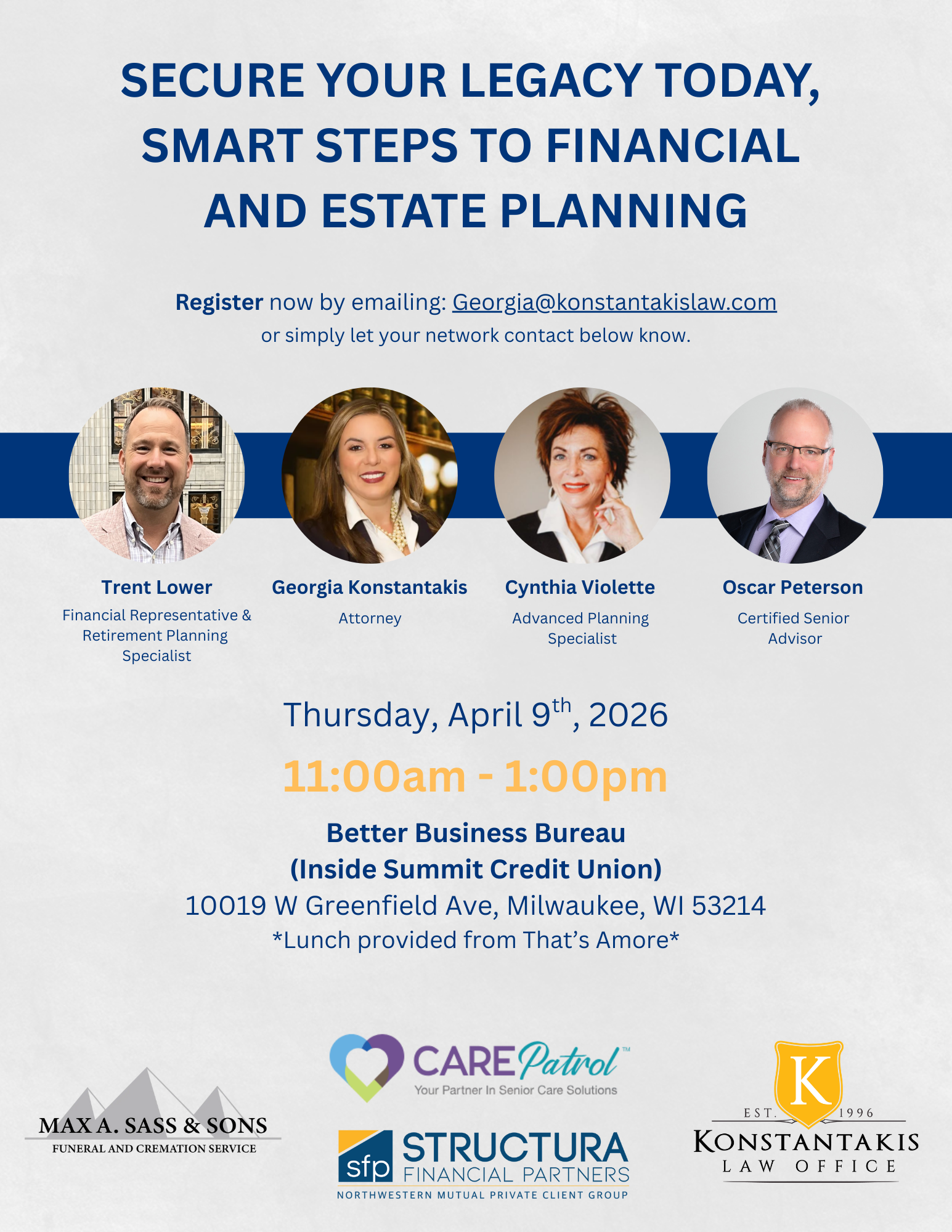 Enjoy a complimentary ballpark luncheon and begin making advance funeral plans with your friends at Max A Sass & Sons. Tuesday, March 24th at 11:30 am